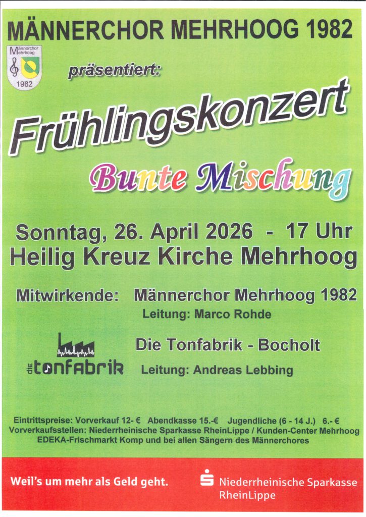 Frühlingskonzert Männerchor Mehrhoog: 26. April 2026