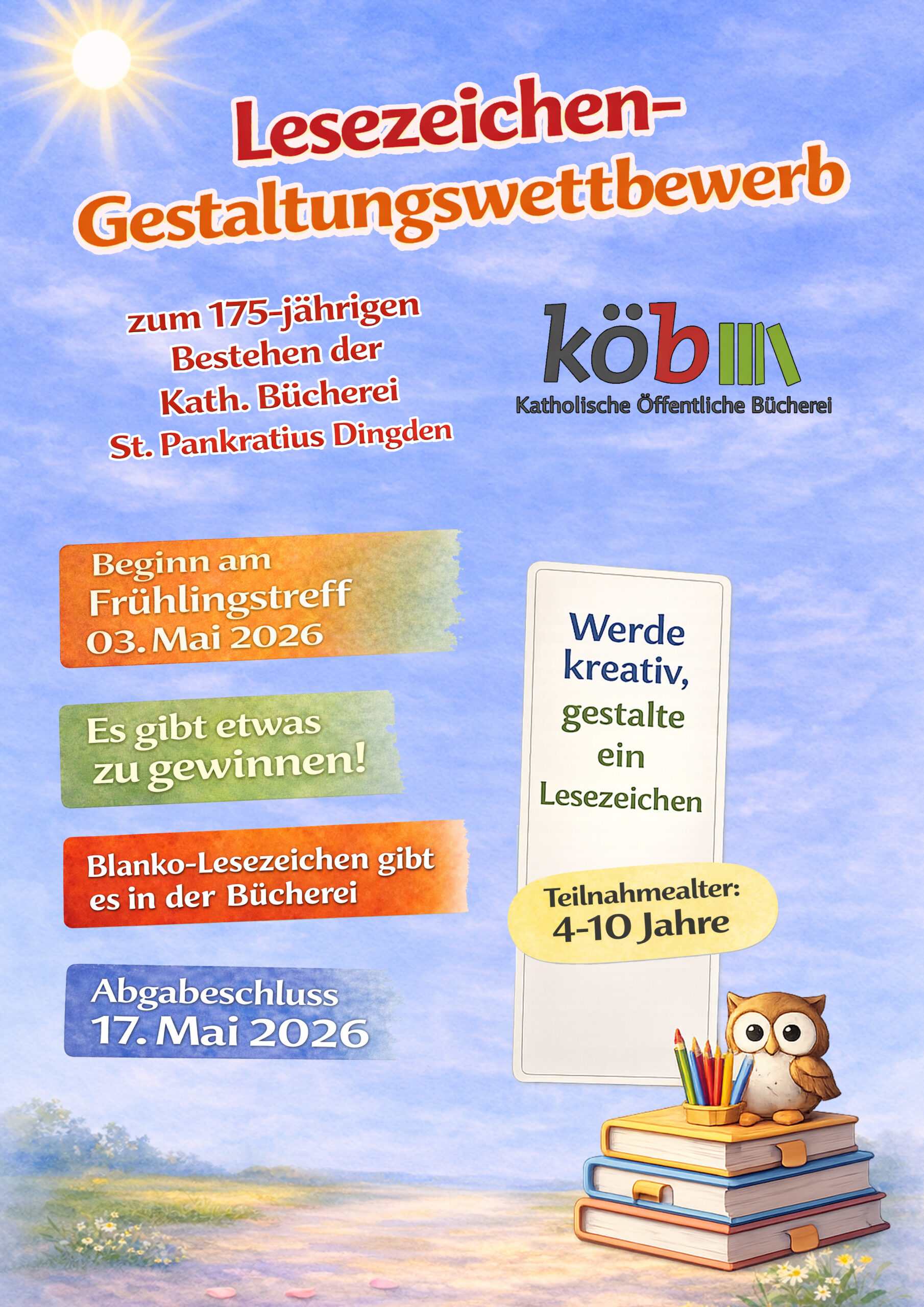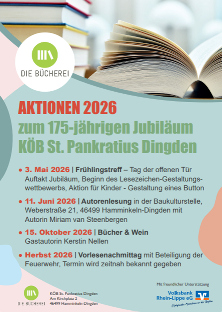 Bücherei St. Pankratius Dingden | Aktionen 2026 zum 175-jährigen Jubiläum 11. Juni 2026 15. Oktober 2026